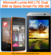 Microsoft Lumia 640 LTE Dual SIM vs Spice Smart Flo 359 (Mi : Comparison of Features and Specification