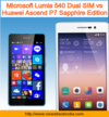 Microsoft Lumia 540 Dual SIM vs Huawei Ascend P7 Sapphire Edition : Comparison of Features and Specification