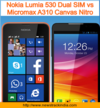Nokia Lumia 530 Dual SIM vs Micromax A310 Canvas Nitro : Comparison of Features and Specification