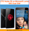 ZTE Nubia Z9 vs Microsoft Lumia 640 Dual SIM : Comparison of Features and Specification
