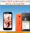 Celkon Q519 vs Microsoft Lumia 640 XL LTE Dual SIM : Comparison of Features and Specification