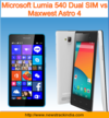 Microsoft Lumia 540 Dual SIM vs Maxwest Astro 4 : Comparison of Features and Specification