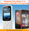 Samsung Guru Music 2 vs Microsoft Lumia 640 LTE Dual SIM : Comparison of Features and Specification