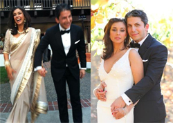 She wore a wedding gown by designer Wendell Rodricks and later a sari by Satya Paul.