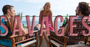"Savages is a story of two marijuana growers who have a common girlfriend. A Mexican drug cartel kidnaps her to force the duo to work with them. Duo then fight with all of them to get her back".