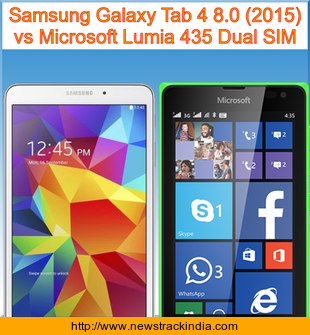 Samsung Galaxy Tab 4 8.0 (2015) is powered with Quad-core 1.2 GHz Cortex-A53 processor. Whereas Microsoft Lumia 435 Dual SIM comes with Dual-core 1.2 GHz Cortex-A7 processor.