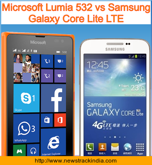 Microsoft Lumia 532 is powered with Quad-core 1.2 GHz Cortex-A7 processor. Whereas Samsung Galaxy Core Lite LTE comes with Quad-core 1.2 GHz processor.