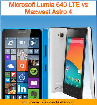 The mobile device Microsoft Lumia 640 LTE runs on Microsoft Windows Phone 8.1 with Lumia Denim. Whereas Maxwest Astro 4 runs on Android OS, v4.4.2 (KitKat).
