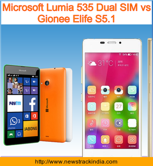 The mobile device Microsoft Lumia 535 Dual SIM runs on Microsoft Windows Phone 8.1. Whereas Gionee Elife S5.1 runs on Android OS, v4.4.2 (KitKat).