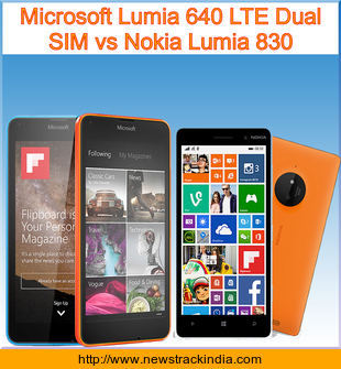 The mobile device Microsoft Lumia 640 LTE Dual SIM runs on Microsoft Windows Phone 8.1 with Lumia Denim. Whereas Nokia Lumia 830 runs on Microsoft Windows Phone 8.1.
