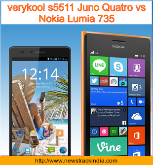 verykool s5511 Juno Quatro is powered with Quad-core 1.3 GHz Cortex-A7 processor. Whereas Nokia Lumia 735 comes with Quad-core 1.2 GHz Cortex-A7 processor.