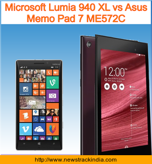 Main Features comparison of the devices Microsoft Lumia 940 XL and Asus Memo Pad 7 ME572C.