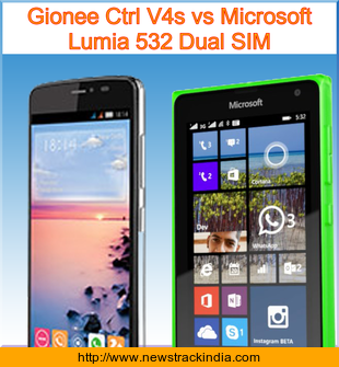 Gionee Ctrl V4s is powered with Quad-core 1.3 GHz Cortex-A7 processor. Whereas Microsoft Lumia 532 Dual SIM comes with Quad-core 1.2 GHz Cortex-A7 processor.