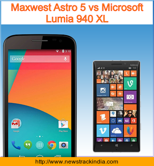 The mobile device Maxwest Astro 5 runs on Android OS, v4.4.2 (KitKat). Whereas Microsoft Lumia 940 XL runs on Microsoft Windows 10.