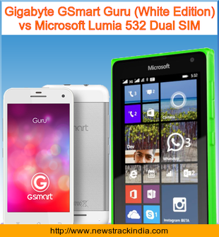 Gigabyte GSmart Guru (White Edition) is powered with Quad-core 1.5 GHz Cortex-A7 processor. Whereas Microsoft Lumia 532 Dual SIM comes with Quad-core 1.2 GHz Cortex-A7 processor.