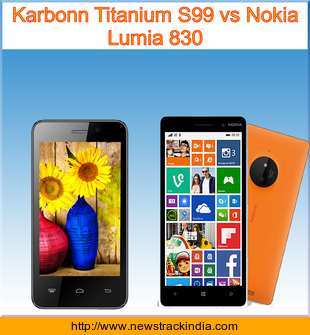 Check Karbonn Titanium S99 vs Nokia Lumia 830 : Comparison of Features and Specification in detail..