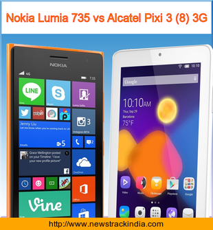 Check Nokia Lumia 735 vs Alcatel Pixi 3 (8) 3G : Comparison of Features and Specification in detail..