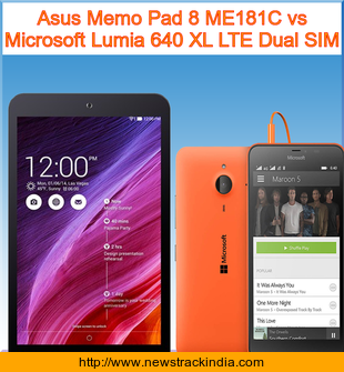 Main Features comparison of the devices Asus Memo Pad 8 ME181C and Microsoft Lumia 640 XL LTE Dual SIM.