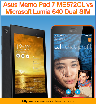 Asus Memo Pad 7 ME572CL is powered with Quad-core 1.83 GHz processor. Whereas Microsoft Lumia 640 Dual SIM comes with Quad-core 1.2 GHz Cortex-A7 processor.