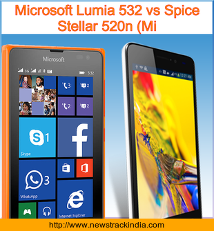 Microsoft Lumia 532 is powered with Quad-core 1.2 GHz Cortex-A7 processor. Whereas Spice Stellar 520n (Mi comes with Quad-core 1.3 GHz Cortex-A7 processor.
