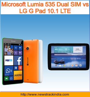 Main Features comparison of the devices Microsoft Lumia 535 Dual SIM and LG G Pad 10.1 LTE.