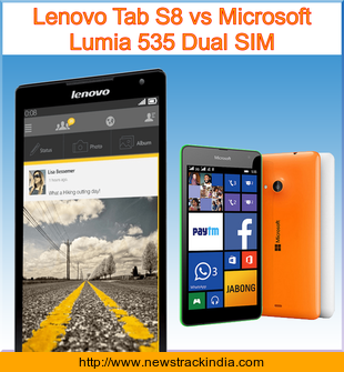 The mobile device Lenovo Tab S8 runs on Android OS, v4.4.2 (KitKat). Whereas Microsoft Lumia 535 Dual SIM runs on Microsoft Windows Phone 8.1.