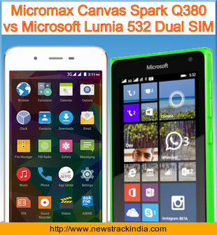 Main Features comparison of the devices Micromax Canvas Spark Q380 and Microsoft Lumia 532 Dual SIM.