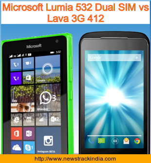 The mobile device Microsoft Lumia 532 Dual SIM runs on Microsoft Windows Phone 8.1. Whereas Lava 3G 412 runs on Android OS, v4.2.2 (Jelly Bean).
