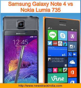 Check Samsung Galaxy Note 4 vs Nokia Lumia 735 : Comparison of Features and Specification in detail..