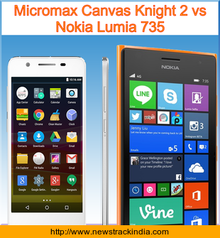 Main Features comparison of the devices Micromax Canvas Knight 2 and Nokia Lumia 735.