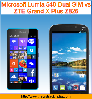 Main Features comparison of the devices Microsoft Lumia 540 Dual SIM and ZTE Grand X Plus Z826.
