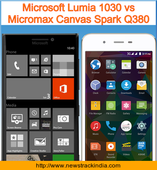 The mobile device Microsoft Lumia 1030 runs on Microsoft Windows 10. Whereas Micromax Canvas Spark Q380 runs on Android OS, v5.0 (Lollipop).
