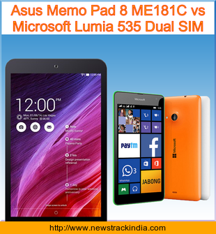 Main Features comparison of the devices Asus Memo Pad 8 ME181C and Microsoft Lumia 535 Dual SIM.