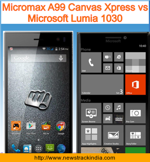 Micromax A99 Canvas Xpress is powered with Quad-core 1.3 GHz processor. Whereas Microsoft Lumia 1030 comes with Quad-core processor.