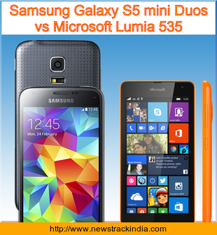 Samsung Galaxy S5 mini Duos is powered with Quad-core 1.4 GHz processor. Whereas Microsoft Lumia 535 comes with Quad-core 1.2 GHz Cortex-A7 processor.