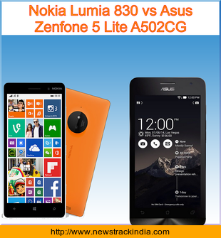 The mobile device Nokia Lumia 830 runs on Microsoft Windows Phone 8.1. Whereas Asus Zenfone 5 Lite A502CG runs on Android OS, v4.4.2 (KitKat).