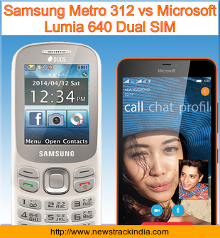 Main Features comparison of the devices Samsung Metro 312 and Microsoft Lumia 640 Dual SIM.