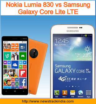 Main Features comparison of the devices Nokia Lumia 830 and Samsung Galaxy Core Lite LTE.
