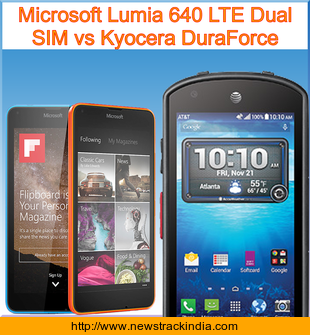 The mobile device Microsoft Lumia 640 LTE Dual SIM runs on Microsoft Windows Phone 8.1 with Lumia Denim. Whereas Kyocera DuraForce runs on Android OS, v4.4.2 (KitKat).