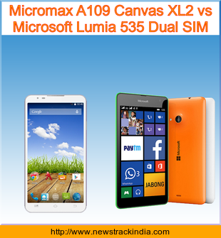 Main Features comparison of the devices Micromax A109 Canvas XL2 and Microsoft Lumia 535 Dual SIM.