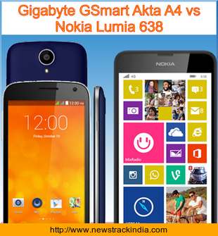 Gigabyte GSmart Akta A4 is powered with Octa-core 1.4 GHz Cortex-A7 processor. Whereas Nokia Lumia 638 comes with Quad-core 1.2 GHz Cortex-A7 processor.