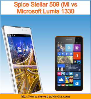 The mobile device Spice Stellar 509 (Mi runs on Android OS, v4.4.2 (KitKat). Whereas Microsoft Lumia 1330 runs on Microsoft Windows Phone 8.1.
