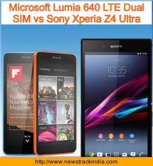 Main Features comparison of the devices Microsoft Lumia 640 LTE Dual SIM and Sony Xperia Z4 Ultra.
