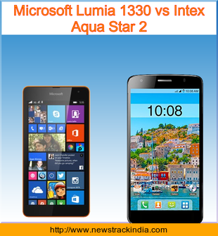 The mobile device Microsoft Lumia 1330 runs on Microsoft Windows Phone 8.1. Whereas Intex Aqua Star 2 runs on Android OS, v4.4.2 (KitKat).