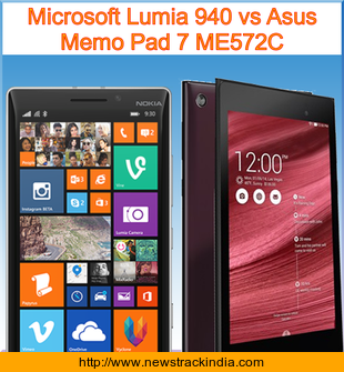 Main Features comparison of the devices Microsoft Lumia 940 and Asus Memo Pad 7 ME572C.