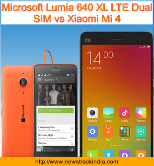 The mobile device Microsoft Lumia 640 XL LTE Dual SIM runs on Microsoft Windows Phone 8.1 with Lumia Denim. Whereas Xiaomi Mi 4 runs on Android OS, v4.4.3 (KitKat).