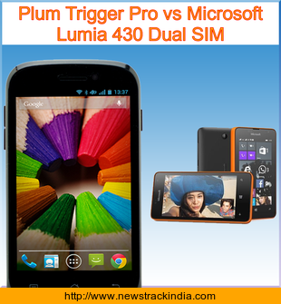 The mobile device Plum Trigger Pro runs on Android OS, v4.2 (Jelly Bean). Whereas Microsoft Lumia 430 Dual SIM runs on Microsoft Windows Phone 8.1, planned upgrade to Windows 10.