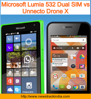 Main Features comparison of the devices Microsoft Lumia 532 Dual SIM and Unnecto Drone X.