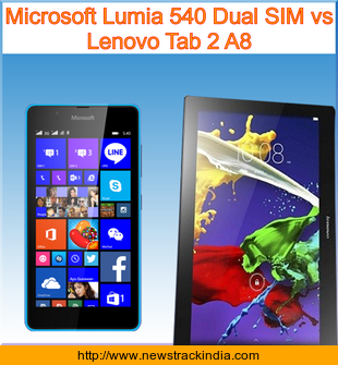 Main Features comparison of the devices Microsoft Lumia 540 Dual SIM and Lenovo Tab 2 A8.