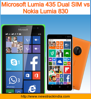The mobile device Microsoft Lumia 435 Dual SIM runs on Microsoft Windows Phone 8.1, planned upgrade to Windows 10. Whereas Nokia Lumia 830 runs on Microsoft Windows Phone 8.1.